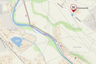 - Přístup a parkování jsou možné též na našem zpevněném pozemku s vjezdem z Příbramské ulice, kde se nachází i zastávka autobusu.